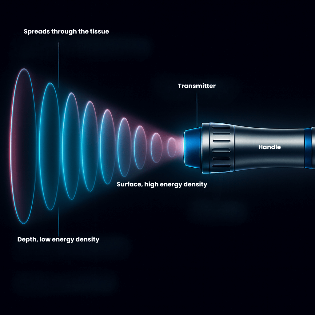 Radial shockwaves mainly target surface-level tissue. For deeper structures, a focused shockwave treatment in a clinic might be better.