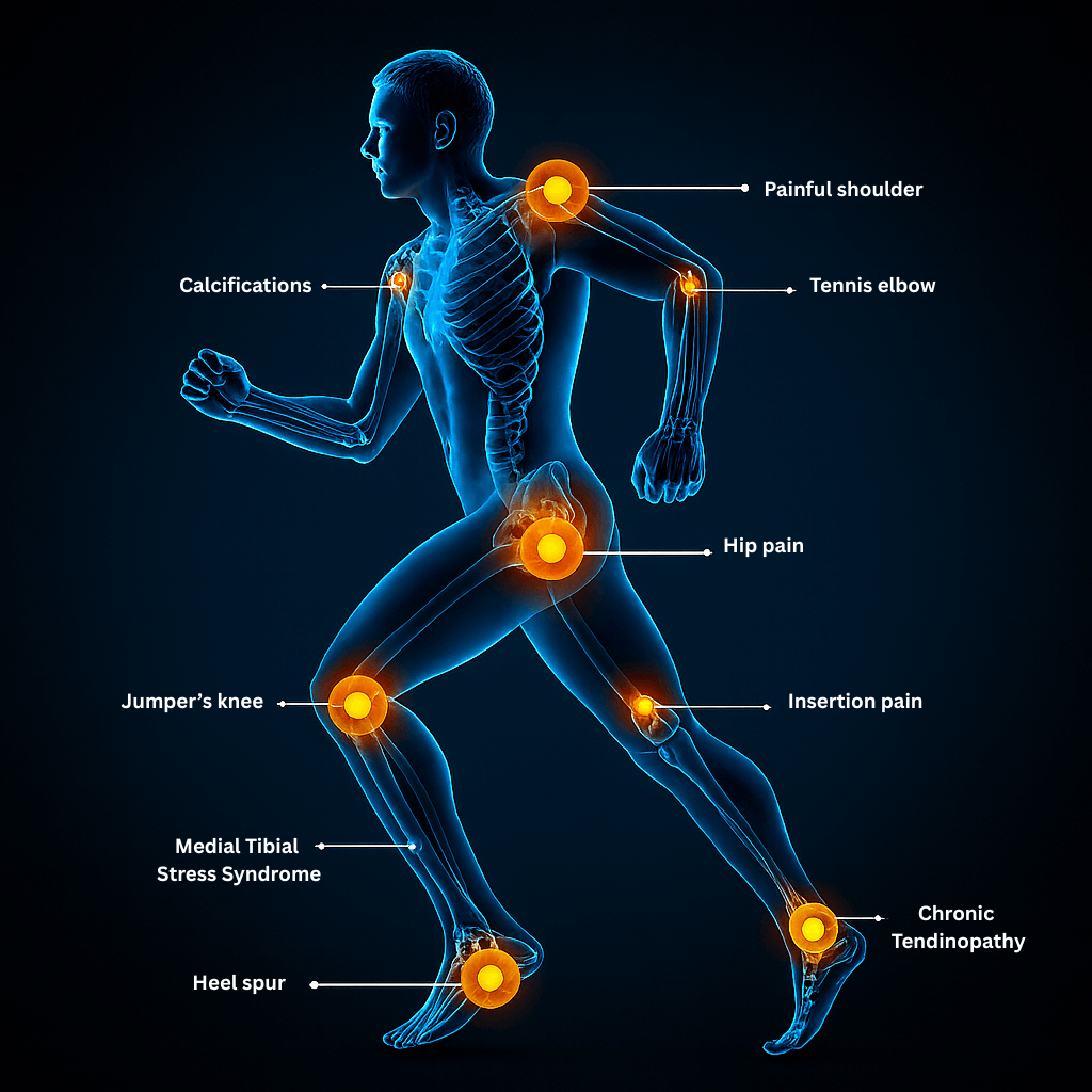 Whether it’s the patellar tendon, shoulder pain, or plantar fasciitis — shockwave therapy targets exactly the problem areas most commonly faced by athletes and everyday heroes. By improving blood circulation, reducing inflammation, and breaking down calcifications, the device supports greater mobility and long-lasting, drug-free pain relief.