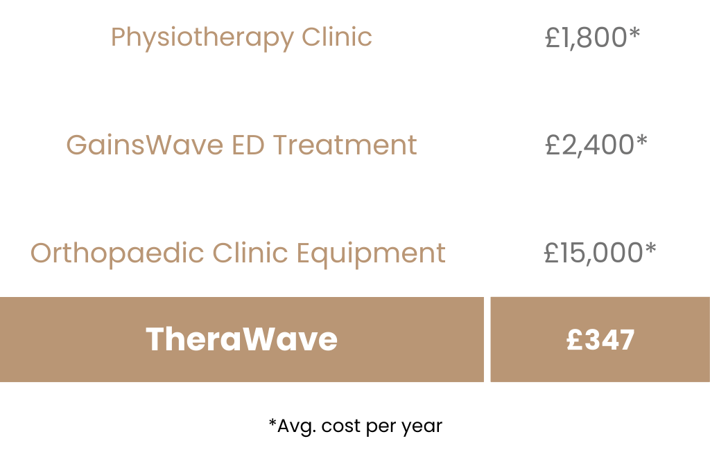 Why spend hundreds on doctor’s visits, medication or invasive treatments? With the TheraWave Shockwave Device, you can tackle pain or erection issues effectively — right from the comfort of your home, at a fraction of the cost.