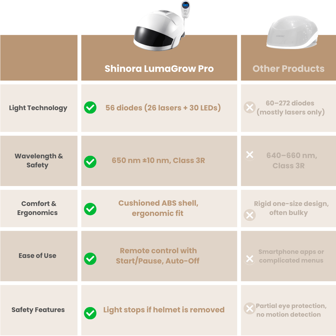 Maybe you’ve already tried those pricey laser helmets, only to see barely any change after months of use. Every time you hope for the best, but the mirror tells you another story. Worse still? The bulky, awkward device presses painfully on your head – uncomfortable and annoying. And when something goes wrong, it’s impossible to get hold of support, or you’re stuck waiting forever for repairs or returns.
